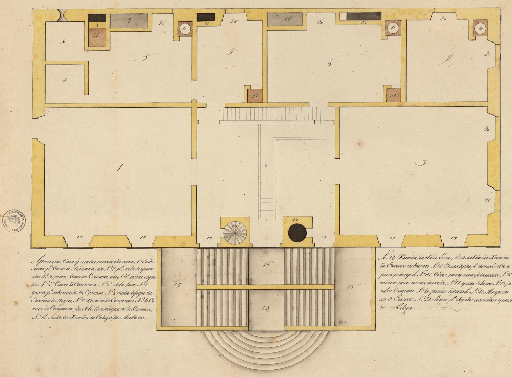 Na planta original da edificação cada cômodo recebeu um número e a legenda apresenta a que se refere esse cômodo.